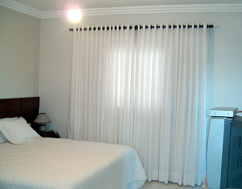 Aqui as cortinas têm uma atenção especial. Feitas sob medida e com confecção própria, são peças que concluem a decoração do seu ambiente. Uma cortina bem projetada, com uso correto dos tecidos e cores, protege o ambiente, assim como os móveis e objetos de arte. São elegantes molduras para a paisagem exposta em grandes ou pequenas janelas.